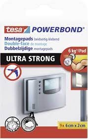 Ypač stiprios dvipusio lipnumo pagalvėlės TESA Powerbond Ultra Strong, 20mm x 0,6m, 9 vnt.