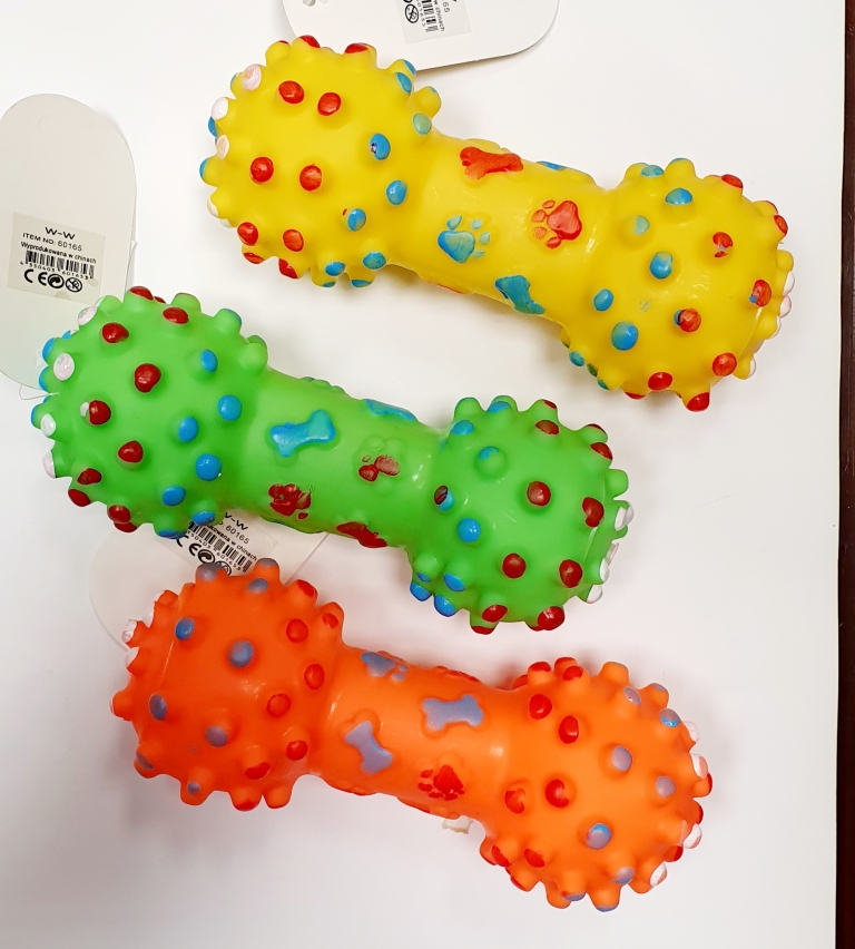 Žaislas guminis cypiantis hantelis, 18 cm
