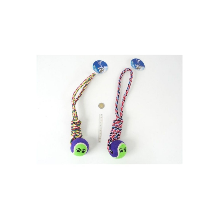 Žaislinė šunio virvelė su kamuoliu, virvelės storis 1cm, įv.spalvų