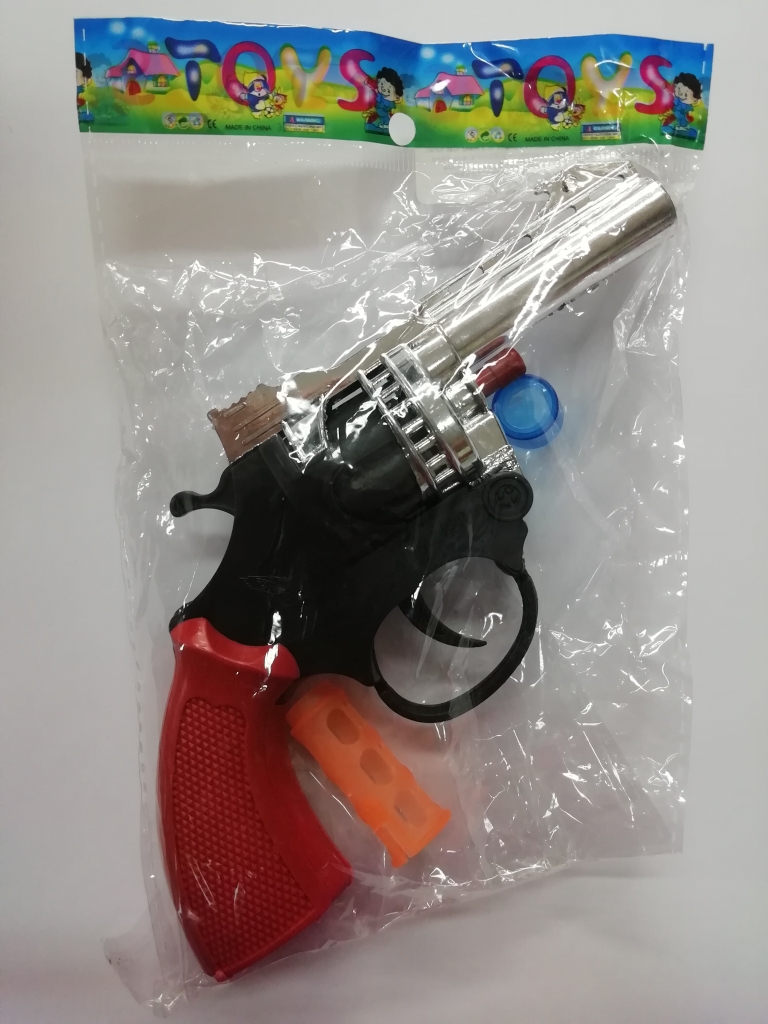 Žaislinis pistoletas su sidabriniu taikikliu ir keičiamais antgaliais