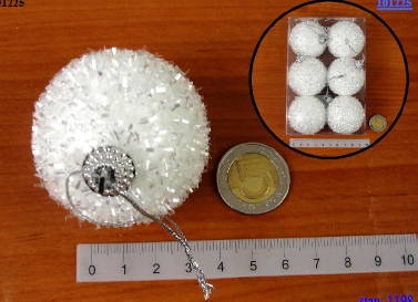 Žaisliukai eglutei polist.6vnt 5cm blizg.dygliais