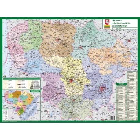 Lietuvos administracinis suskirstymas M 1:600 000 (1 cm - 6 km), laminuotas.