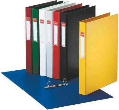 A5 formatas. Su 2 žiedų susegimo mechanizmu. Dengtos spalvoto plastiko plėvele. Nugarėlės plotis 35 mm. Skaidri kišenėlė etiketei. Susegimo žiedų skersmuo - 25 mm. Dėžėje 10 vnt.