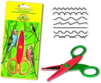 Žirklės figūrinės, skirtos figūriniam karpymui, įvairių spalvų ir formų.