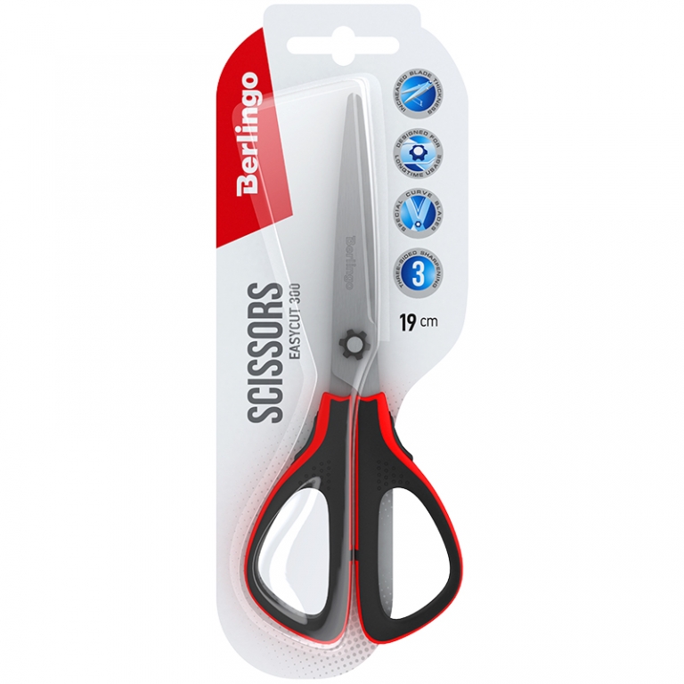 Žirklės nerūdijančio plieno Berlingo Easycut 300 19cm. su gumine rankena juodai raudonos spl.