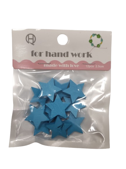 Žvaigždė medinė 2.5cm 12vnt žydros sp.