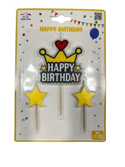 Žvakė-dekoracija su žvaigždutėmis auksinės sp.3vnt.