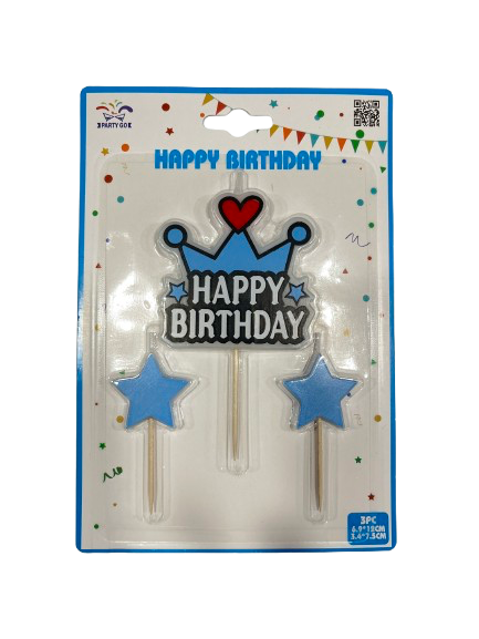 Žvakė-dekoracija su žvaigždutėmis mėlynos sp.3vnt.