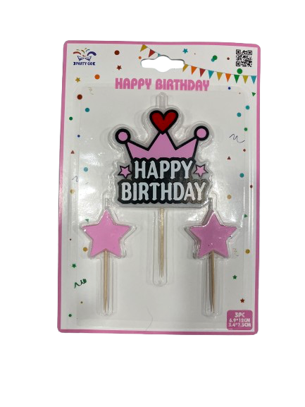 Žvakė-dekoracija su žvaigždutėmis rožinės sp.3vnt.