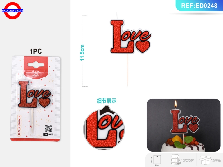 Žvakė tortui "LOVE" raudonos spl. 11.5cm.