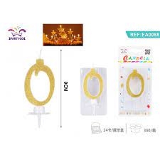 Žvakė tortui skaičius "0" aukso spl. 9cm.
