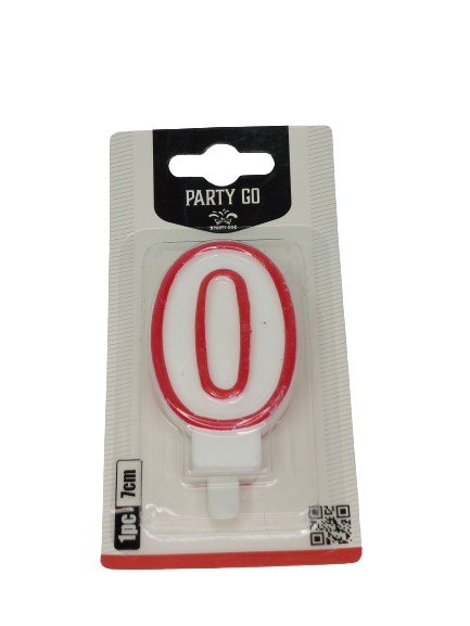 Žvakė tortui skaičius "0" baltos-raudonos spl. 7cm.