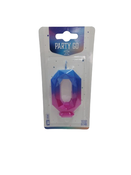 Žvakė tortui skaičius "0" mėlyna- rožinė spl. 7,5cm.