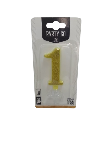 Žvakė tortui skaičius "1" aukso spl. bizgus 9 cm.