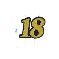 Žvakė tortui skaičius "18" aukso su juoda spl. blizgus 12cm.