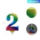 Žvakė tortui skaičius "2" įvairiaspalvis 9cm.