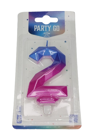 Žvakė tortui skaičius "2" mėlyna- rožinė spl. 7,5cm.