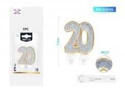 Žvakė tortui skaičius "20" sidarbinės spl. blizgus 7.5cm