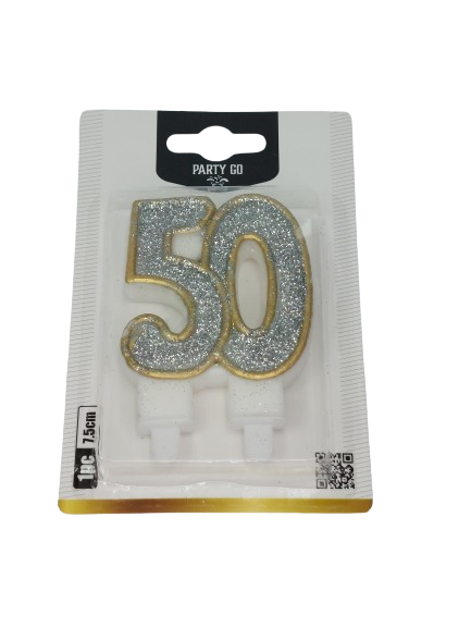 Žvakė tortui skaičius "50" sidarbinės spl. blizgus 7.5cm