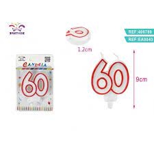 Žvakė tortui skaičius "60" baltos-raudonos spl. 9cm.