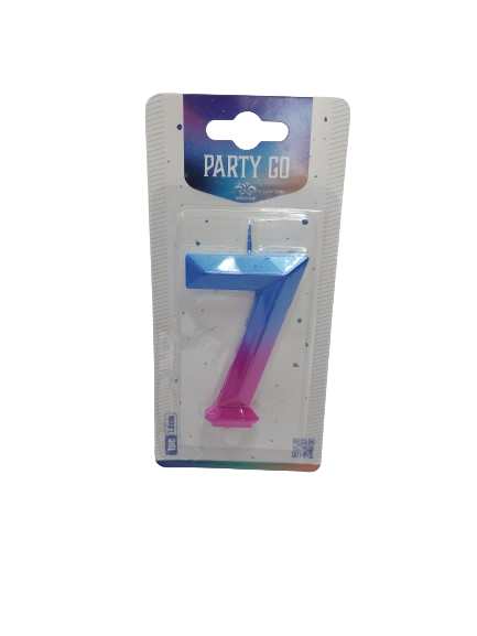 Žvakė tortui skaičius "7" mėlyna- rožinė spl. 7,5cm.