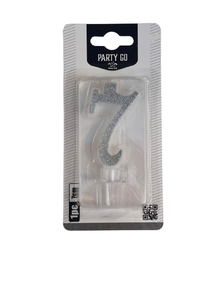 Žvakė tortui skaičius "7" sidabro spl. bizgus 9 cm.
