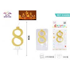 Žvakė tortui skaičius "8" aukso spl. 9cm.