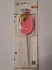 Žvakė tortui skaičius "9" įvairių spl. 13cm.