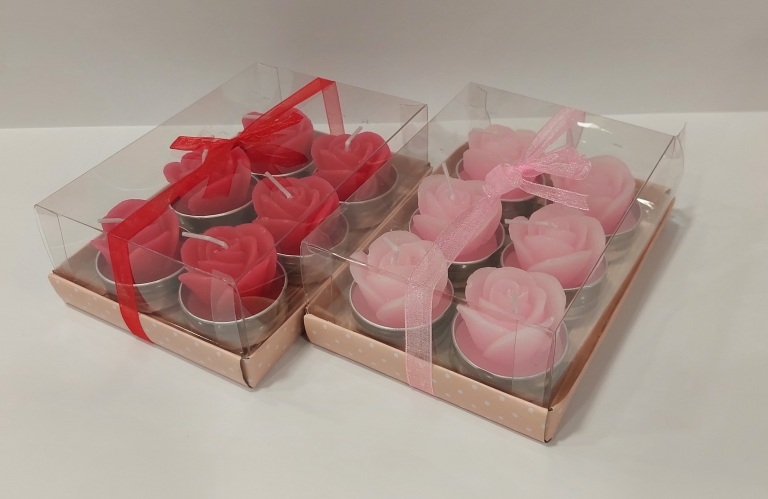 Žvakės - Rožė kvepianti 6 vnt. raudonos-rožinės spl.