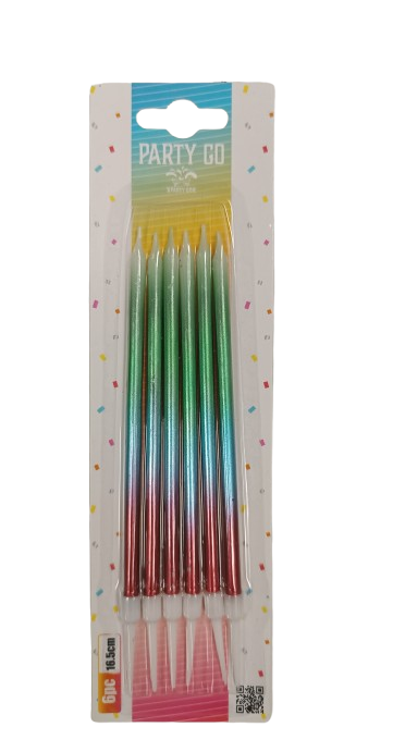 Žvakės tortui 6vnt. įvairiaspalvės spl. 16.5cm – tai puikus pasirinkimas, kad jūsų šventės tortas atrodytų dar įspūdingiau! Šios žvakės ne tik papuoš jūsų skanėstą, bet ir suteiks šventinei nuotaikai ypatingą žavesį.