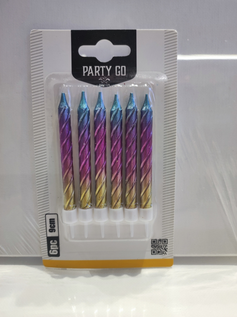 Žvakės tortui 6vnt. įvairiaspalvės, 9cm – puikus pasirinkimas, norint pradžiuginti savo artimuosius šventės metu! Šios spalvingos žvakės ne tik suteiks jūsų tortui ypatingą šventinę atmosferą, bet ir padės sukurti nepamirštamą akimirką.