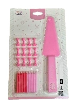 Žvakės tortui su plaustymo įrankiu rožinės sp. 24vnt. 7,8cm.