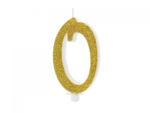 Žvakutė ant torto, skaičius 0, su aukso sp. blizgiu apvadu