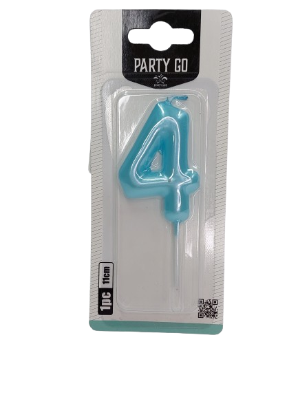 Žvakutė ant torto skaičius 4 žydros sp.11cm