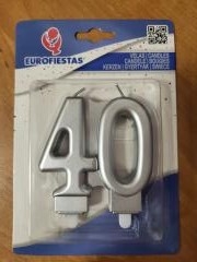 Žvakutė ant torto skaičius "40" sidabro spl. 7.7 cm.
