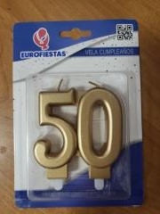 Žvakutė ant torto skaičius "50" aukso spl. 7.7 cm.
