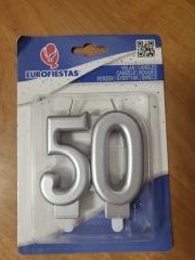 Žvakutė ant torto skaičius "50" sidabro spl. 7.7 cm.