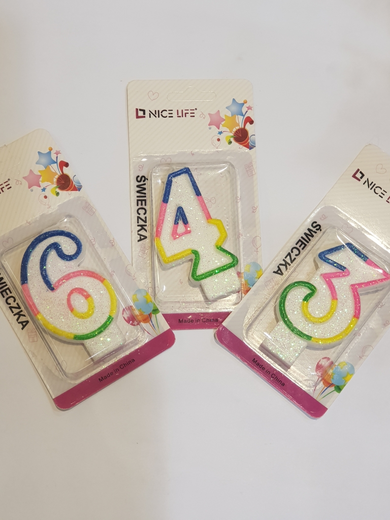 Žvakutės skaičiukai, įvairių spalvų ir atspalviųm tortui papuošti.