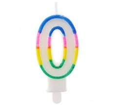 Žvakutė skaičiukas 0 ant torto įvairiaspalviu apvadu
