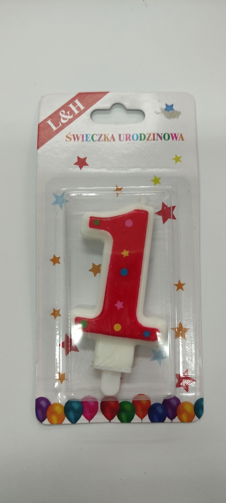 Žvakutė skaičiukas 1 ant torto raudonos spalv.