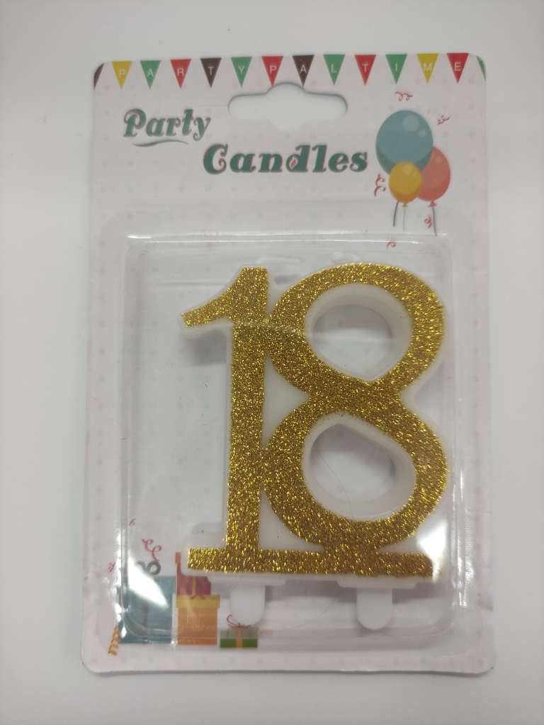 Žvakutė skaičiukas 18 ant torto aukso spalvos apvadu