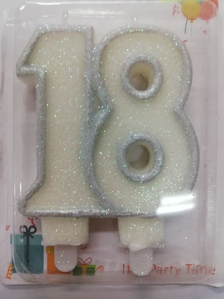 Žvakutės skaičius 18 , tinka tortui papuošti.