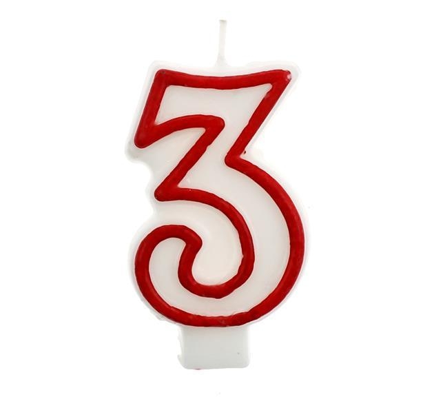 Žvakutė skaičiukas 3 ant torto su apvadu