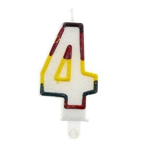 Žvakutė skaičiukas 4 ant torto įvairiaspalviu apvadu