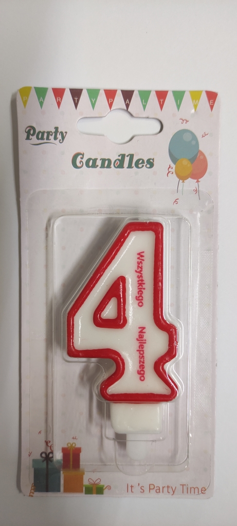Žvakutė skaičiukas 4 ant torto su raudonu apvadu
