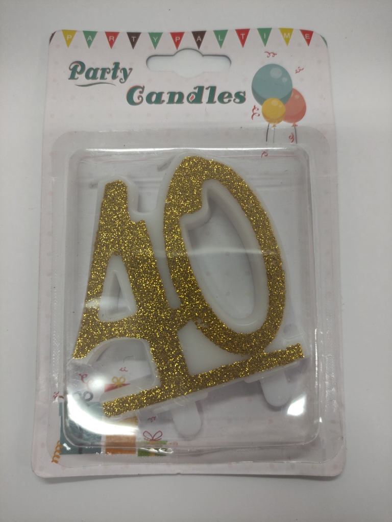 Žvakutė skaičiukas 40 ant torto auksiniu apvadu
