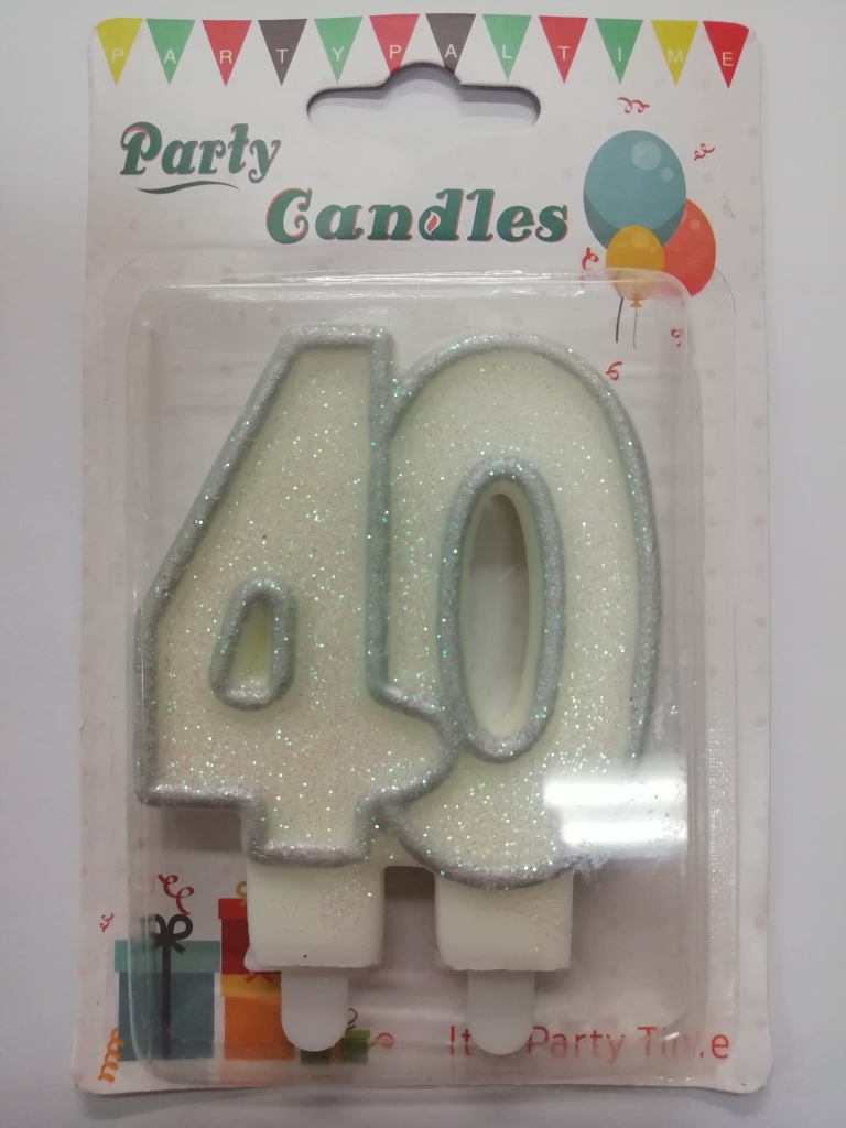 Žvakutė skaičiukas 40 ant torto sidabro spalvos apvadu