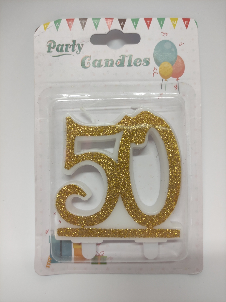 Žvakutė skaičiukas 50 ant torto auksiniu apvadu