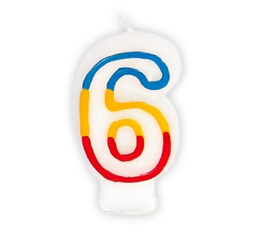 Žvakutė skaičiukas 6 ant torto įvairiaspalviu apvadu