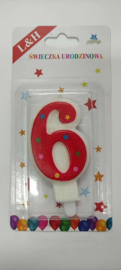 Žvakutė skaičiukas 6 ant torto raudonos spalv.